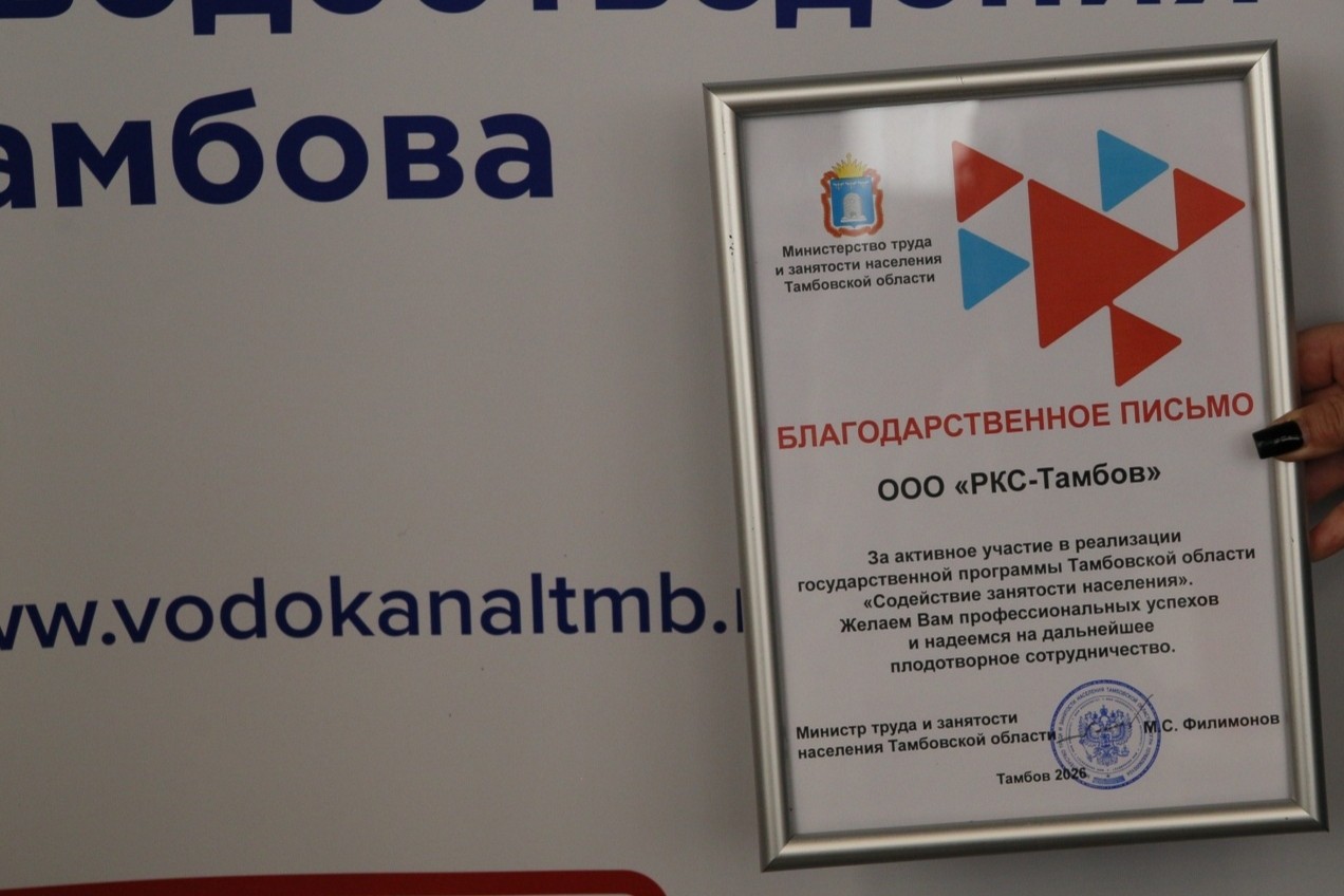 «РКС-Тамбов» отмечены Благодарственным письмом министерства труда и занятости населения